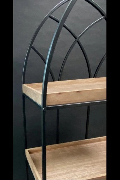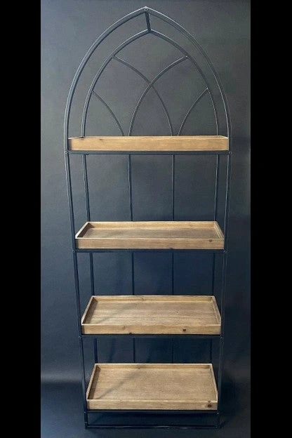 Metal Shelf With Rod And Four Mango Wood Shelves, Gunmetal Finish & Natural (Pick Up Only)