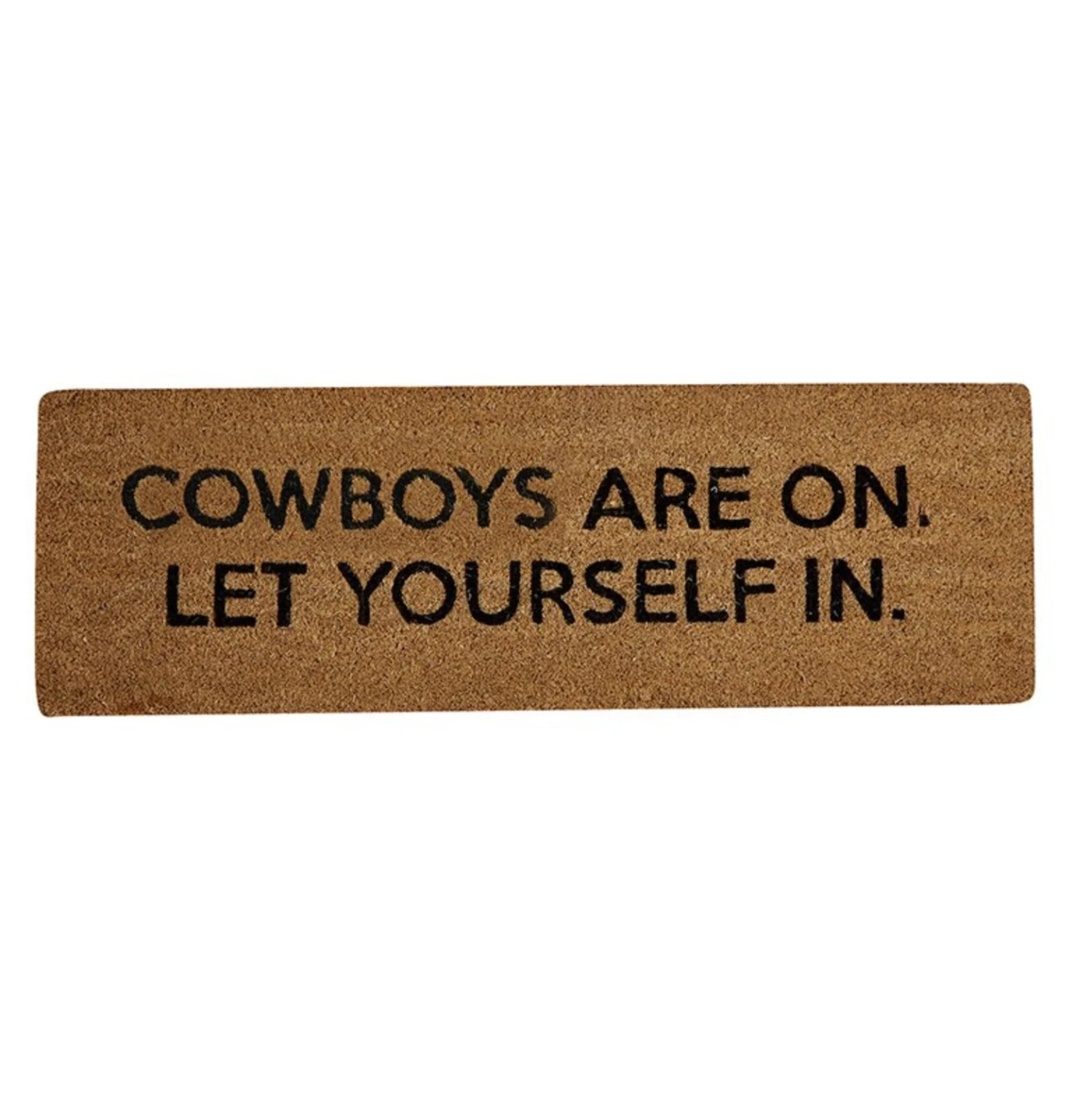 Whimsical welcoming phrase on this door mat will bring laughter to your party. Made of eco friendly and sustainable material.