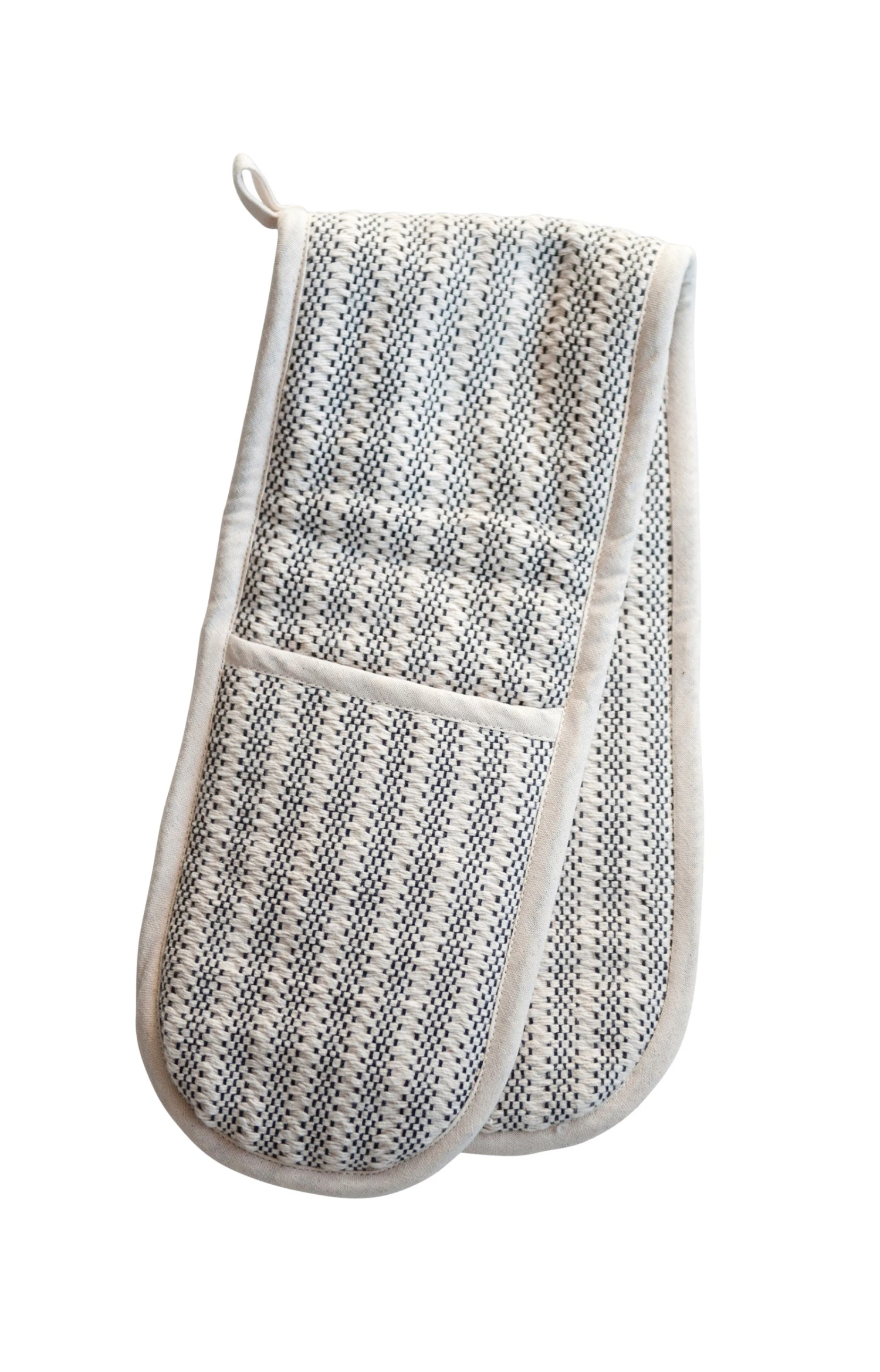 When moving a hot dish, make things easy by only having to grab one hot mitt/potholder. This long mitt has a pocket on each end for placing a hand in. If moving a large pot, allow the center of the hot mitt support the bottom while holding the sides with the mitt portions. It is also perfect for placing on the table for an extra long dish to sit on.