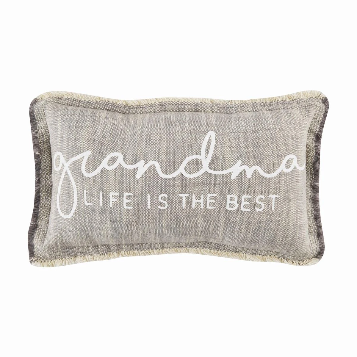 Cotton slub lumbar pillow with frayed flange. Zipper closure.