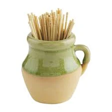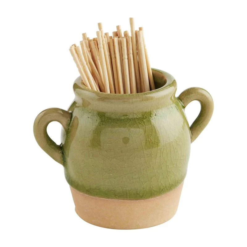 2-piece set. Glazed terracotta mini pot. Comes with pack of toothpicks.