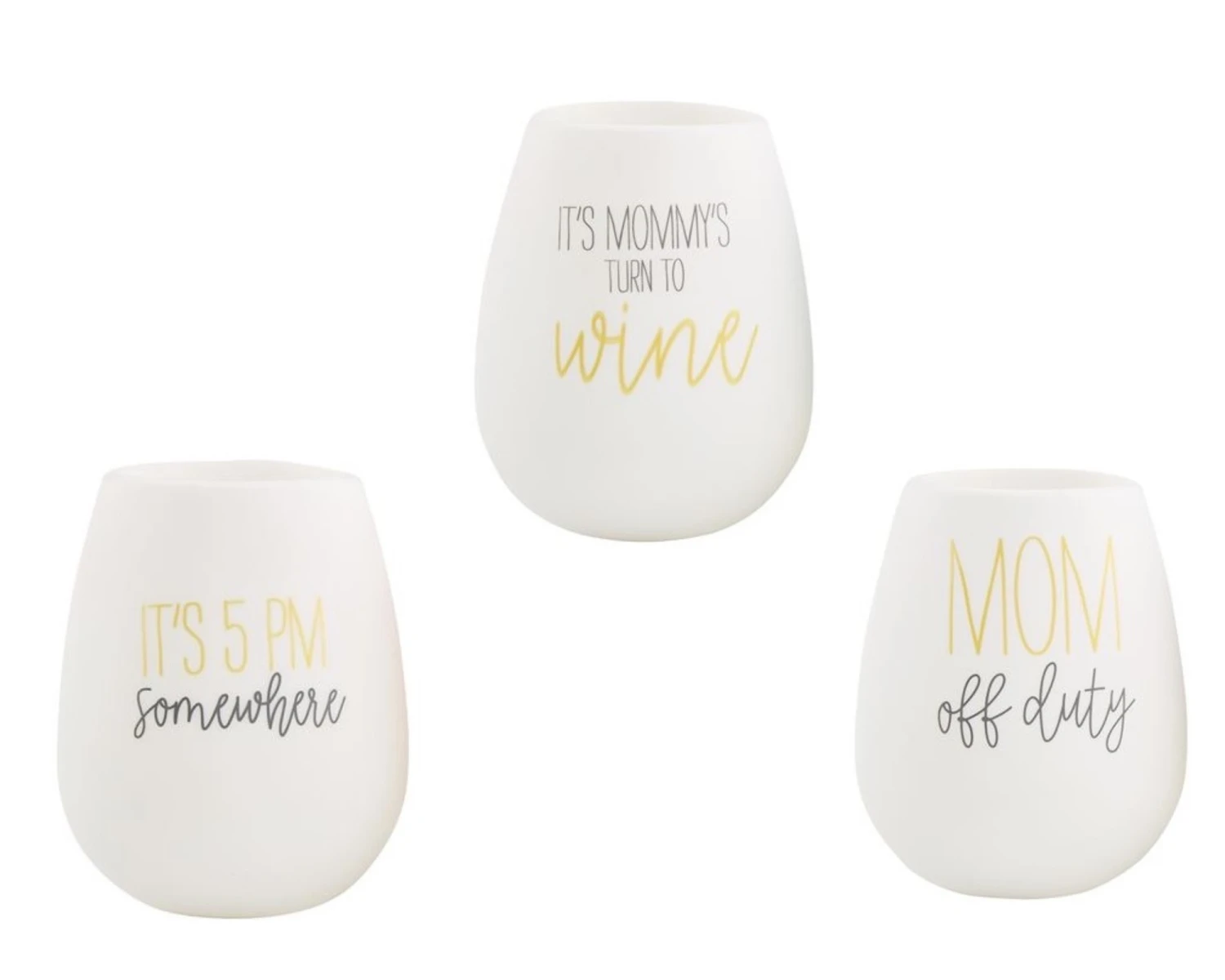Mom Sentiment Saying Silicone Wine Cup Glass, Three Style Options By Mud Pie