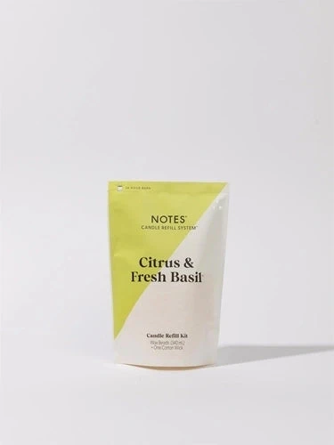 Meet the NOTES Candle Refill Kit, because we believe in refills over landfills and a more responsible way to candle. Each Candle Refill Kit includes a perfectly portioned bag of fragranced wax beads and a lead-free, cotton wick. Use this refill kit with your NOTES Starter Candle and Silicone Cleanout Insert (sold separately) for room-filling fragrance you’ll feel good about.