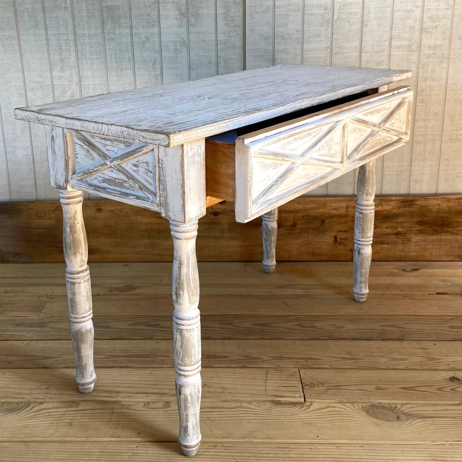 Our Painted bungalow table is designed from a vintage design and is offered in a soft aged blue.