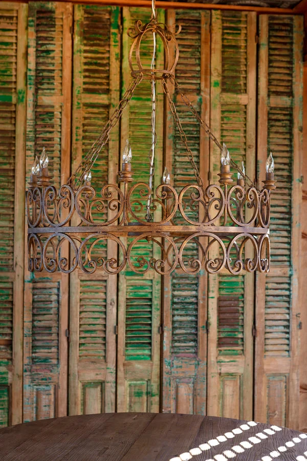 The Saint Augustine chandelier is stunning and right at 37″ around this fixture commands attention! With an aged gold finish it is fit for a queen with a crown on top!