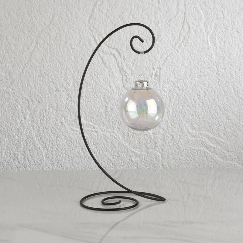Add a touch of elegance to holiday ornaments, jewelry or other specialty items. Constructed of a round metal wire, this piece features a black painted finish and matching swirl accents on the base and hanging sections. It is perfect for holiday ornaments or specialty items year-round.