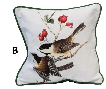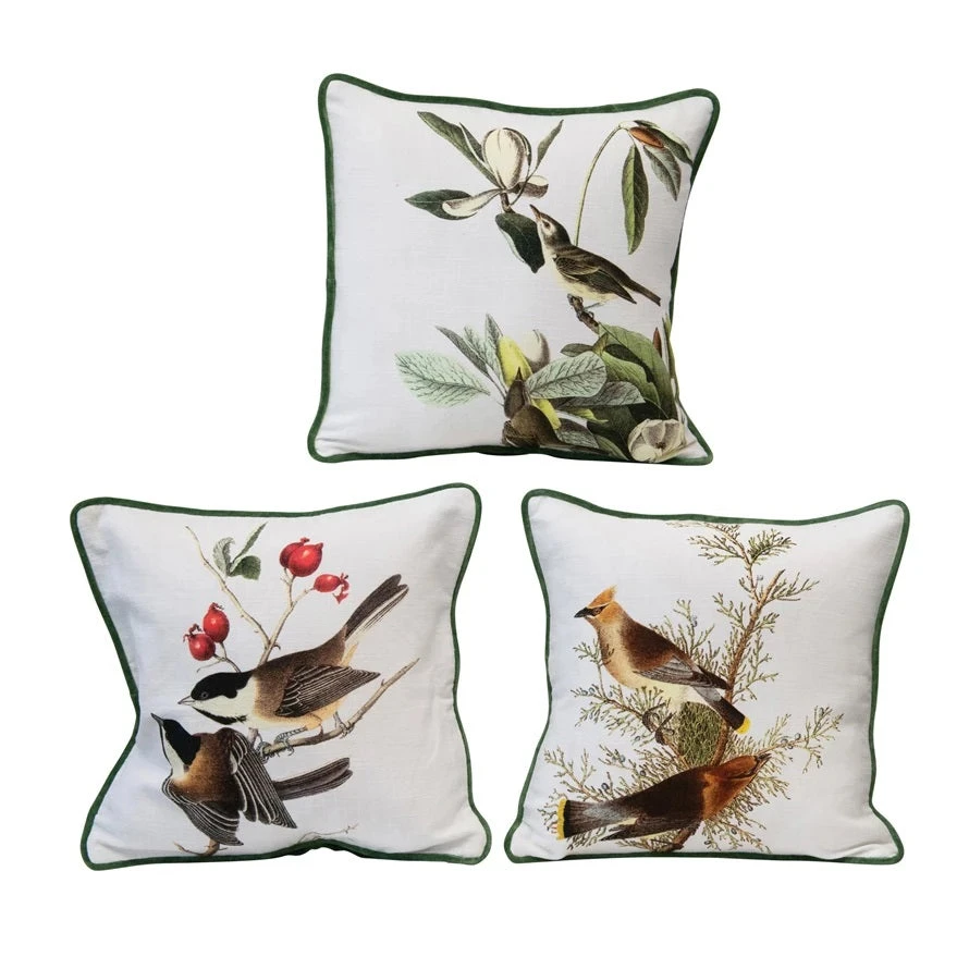 Vintage Reproduction Bird Pillow With Velvet Back