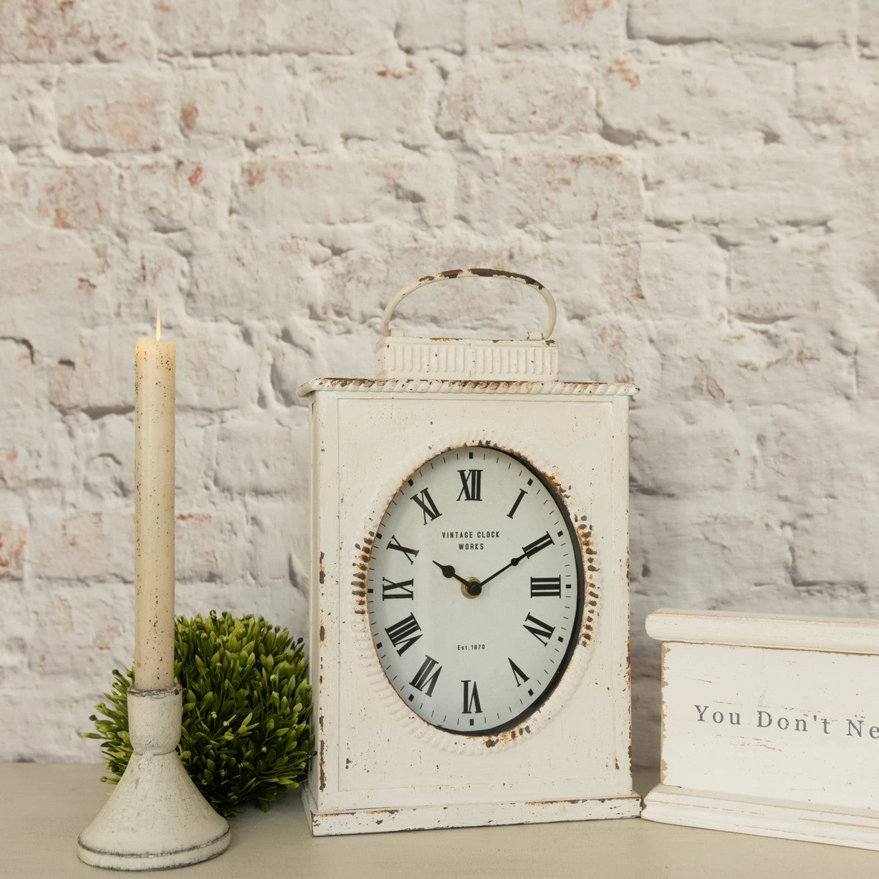 White Lantern Tabletop Clock