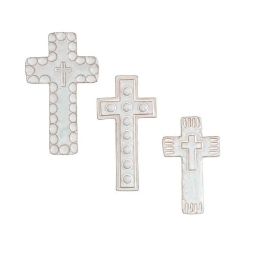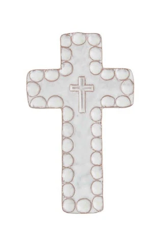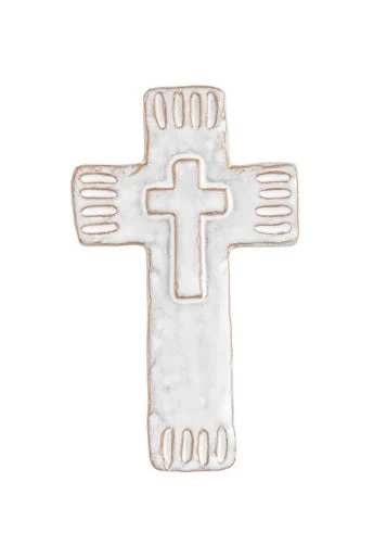 White Stoneware Cross Sitter, 3 Size Options, By Mud Pie