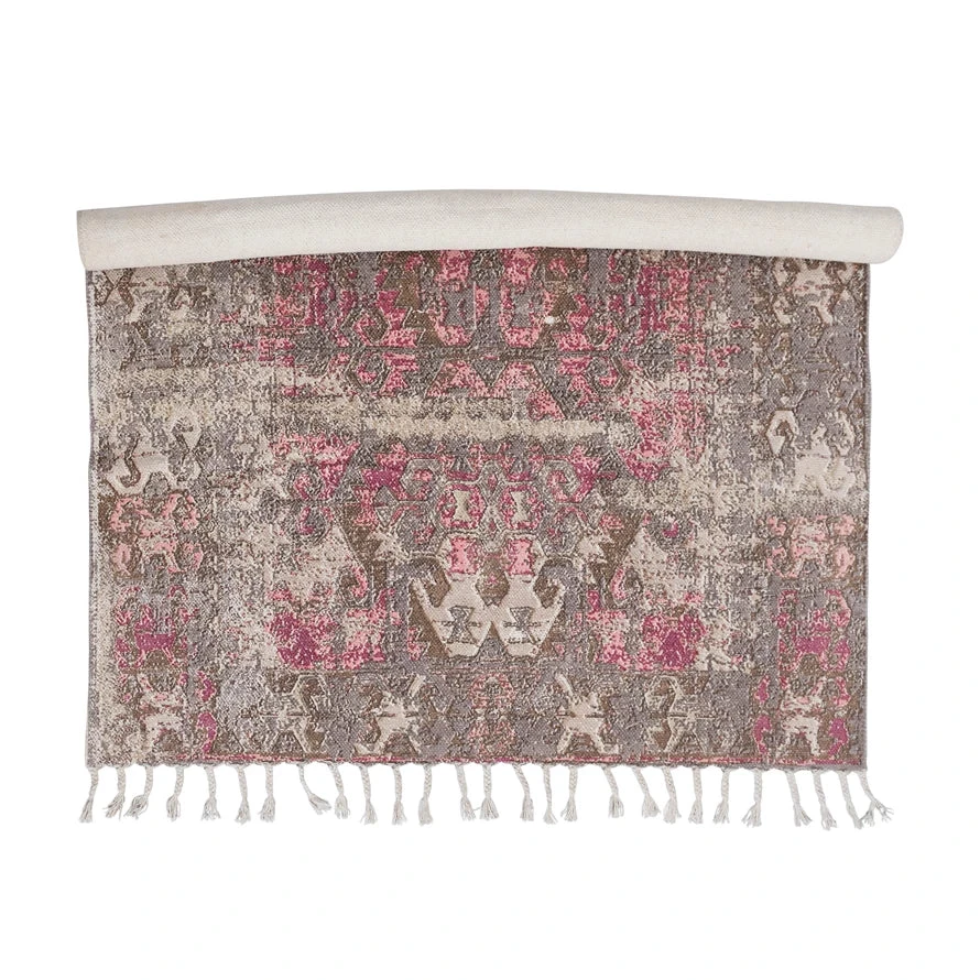 Woven Cotton Distressed Print Rug With Braided Fringe, Multi Color (Pick Up Only)