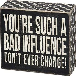 “You’re Such A Bad Influence, Don’t Ever Change” Box Sign
